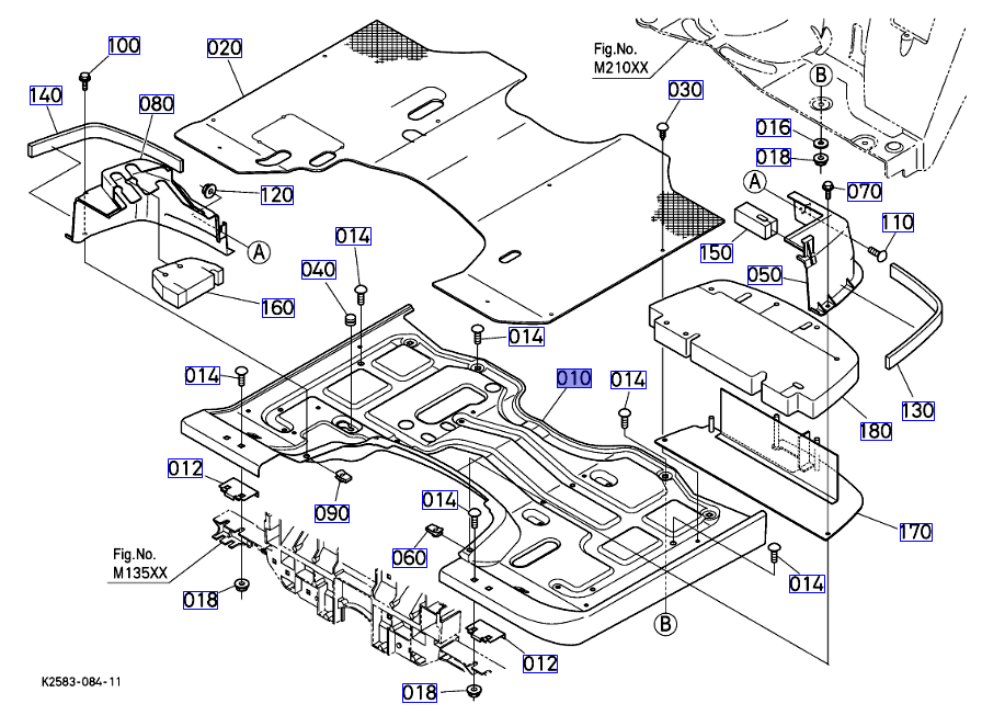010 op de overzichtstekening, originele vloerplaat Kubota K288355150 || K2883-55150