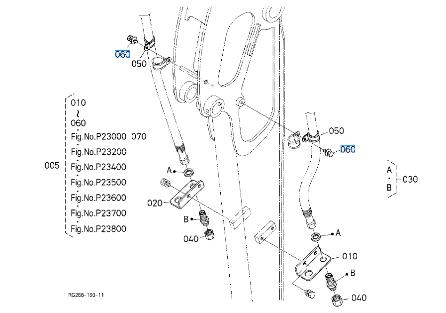 020 op de overzichtstekening, originele steun t.b.v extra ventielen Kubota RG26595750 || RG265-95750