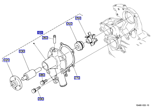 010 op de overzichtstekening, originele waterpomp Kubota 1E05173036 || 1E051-73036