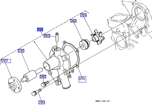 010 op de overzichtstekening, originele waterpomp Kubota 1988373030 || 19883-73030