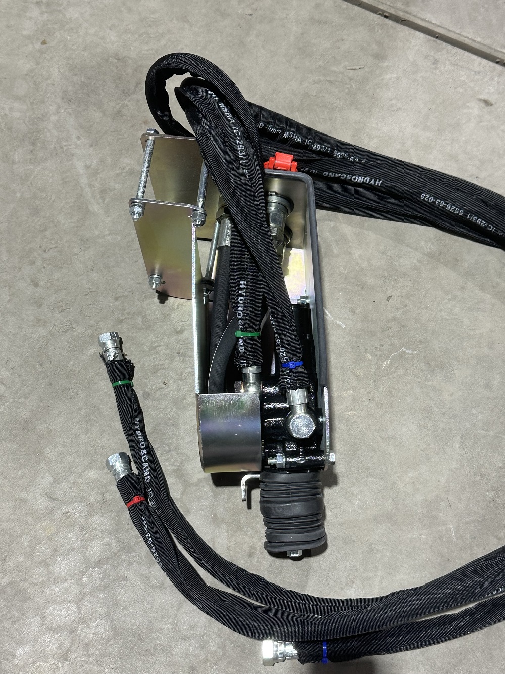 Monoblok ventiel inclusief koppelingen, bedieningshendel, slangen en dubbelwerkende ventielen.