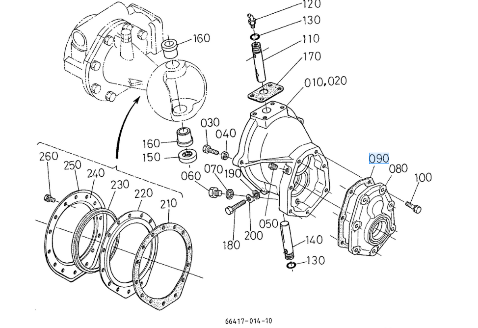 090 op de overzichtstekening, originele pakking Kubota 6690556442 || 66905-56442