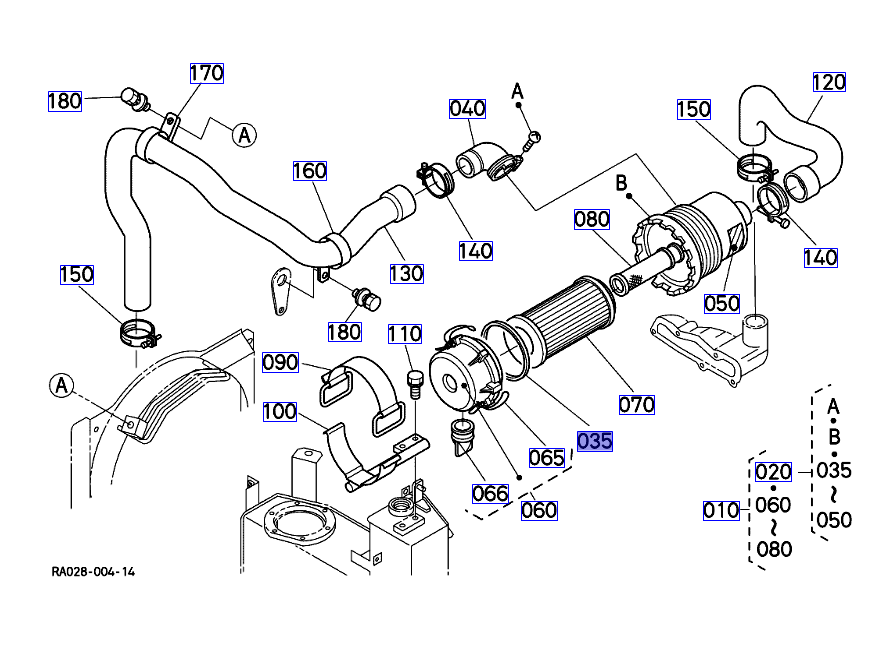 035 op de overzichtstekening, Afdichting luchtfilterhuis origineel Kubota 6A10082530 || 6A100-82530