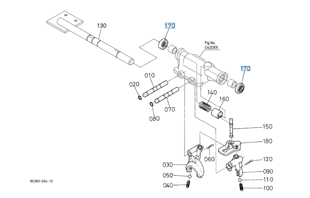 170 op de overzichtstekening, originele oliekeerring Kubota 6C04018290 || 6C040-18290