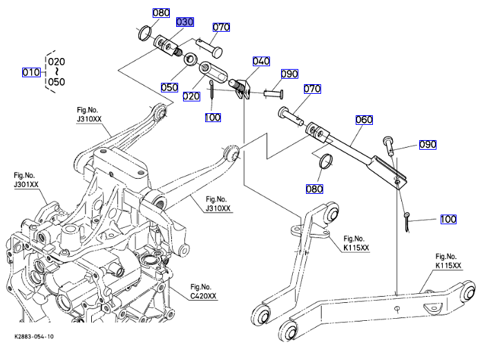 030 op de overzichtstekening, originele wartel voor de hefinrichting recht Kubota K258138230 || K2581-38230