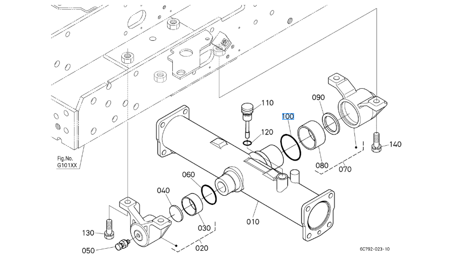 100 op de overzichtstekening, o-ring Kubota 0481150700 || 04811-50700