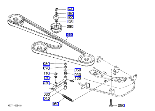 010 op de overzichtstekening, originele multiriem / v-snaar voor het maaidek Kubota  K5763-34712 || K576334712