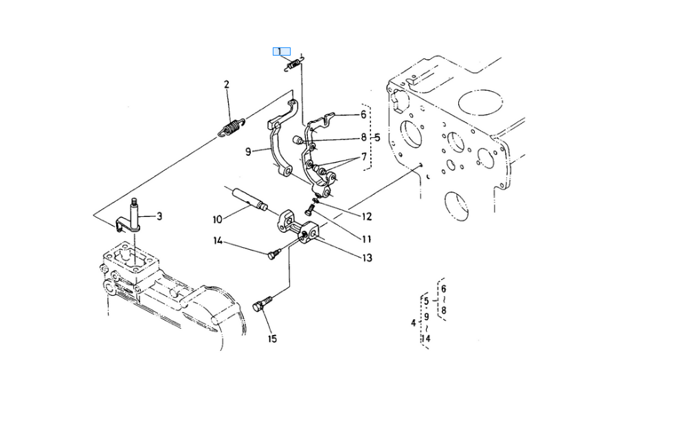 1 op de overzichtstekening, originele veer "start" Kubota 1522156480 || 15221-56480