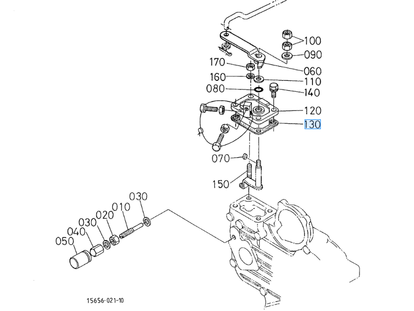 130 op de overzichtstekening, pakking gas regel deksel Kubota 1526357210 || 15263-57210