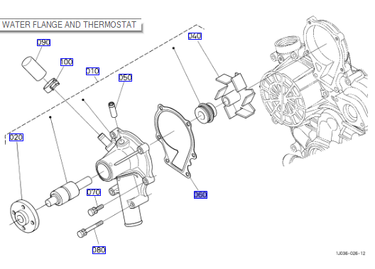 060 op de overzichtstekening, originele pakking voor de waterpomp van diverse Kubota motoren 1623973430 || 16239-73430