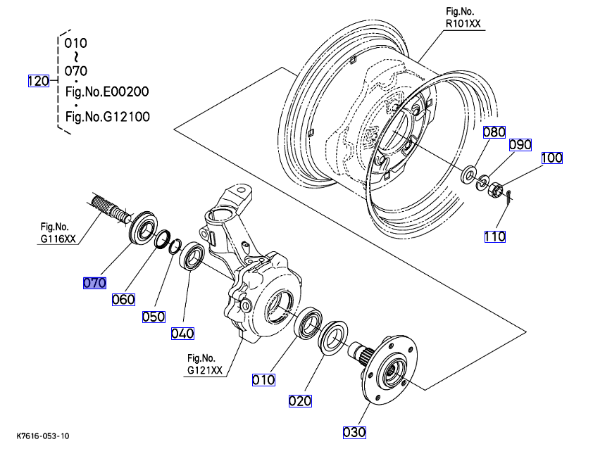 070 op de overzichtstekening, originele oliekeerring Kubota K756118870 || K7561-18870
