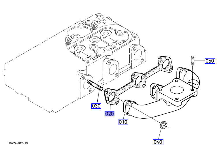 020 op de overzichtstekening, originele pakking voor het uitlaatspruitstuk Kubota 1626112350 || 16261-12350