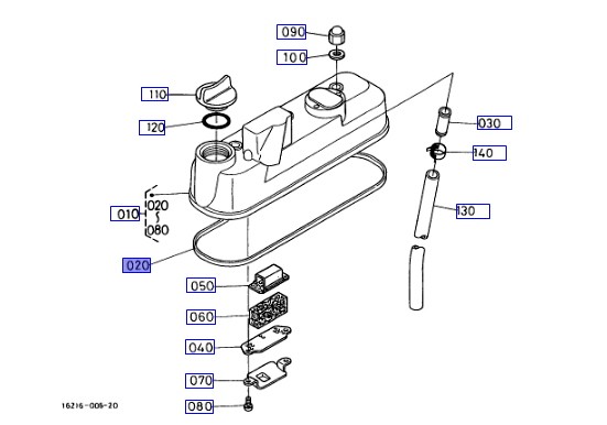 020 op de overzichtstekening, originele klepdekselpakking Kubota 1626114505