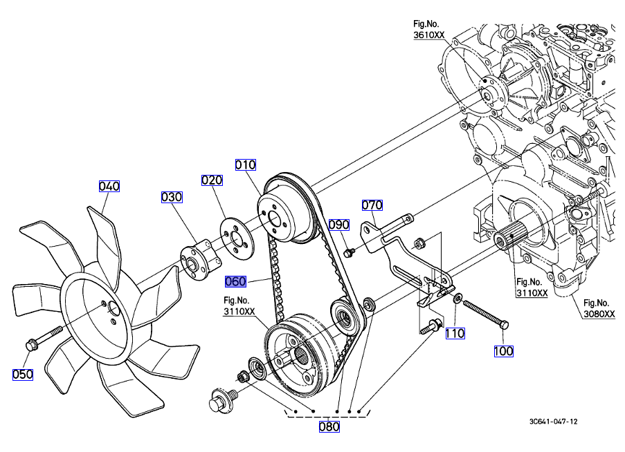 060 op de overzichtstekening, originele v-snaar Kubota 1634397012 || 16343-97012