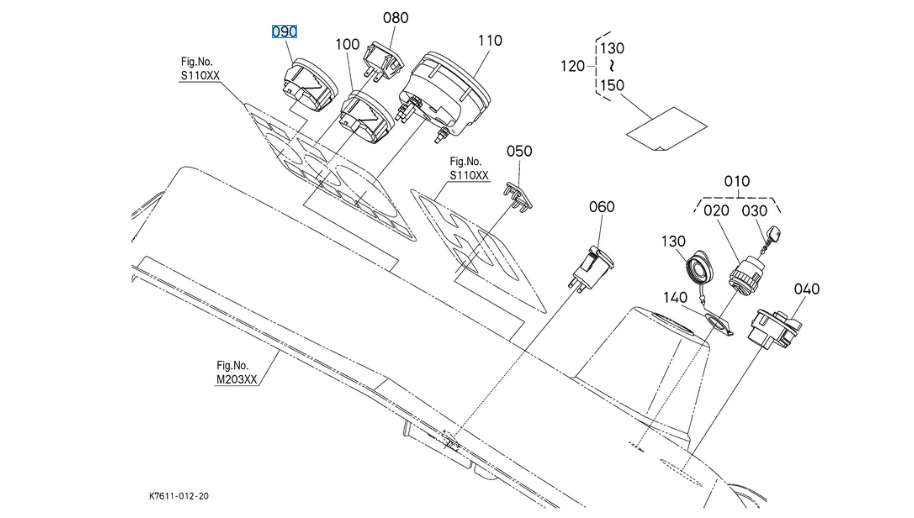 090 op de overzichtstekening, originele tankmeter / dashboard  Kubota  K756162524 || K7561-62524
