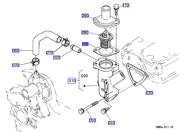 100 op de overzichtstekening, originele pakking voor het thermostaathuis Kubota 16851-73270 || 1685-73270