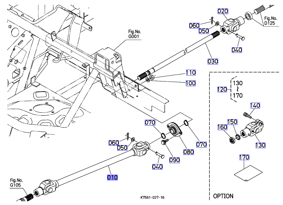 Originele aandrijfas / 4-wd as Kubota RTV900 K757116810 || K7571-16810
