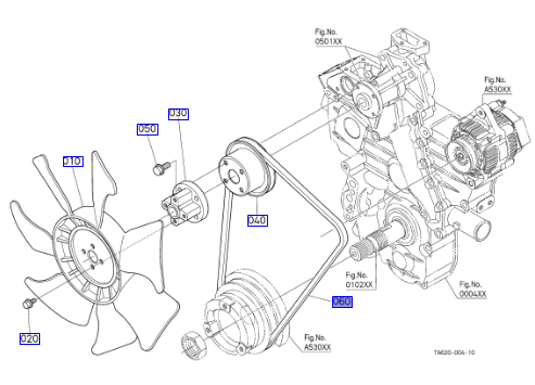 050 op de overzichtstekening, originele v-snaar Kubota 1712397012 || 17123-97012
