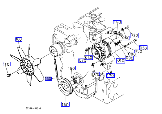 130 op de overzichtstekening, originele v-snaar Kubota 1736797010 || 17367-97010