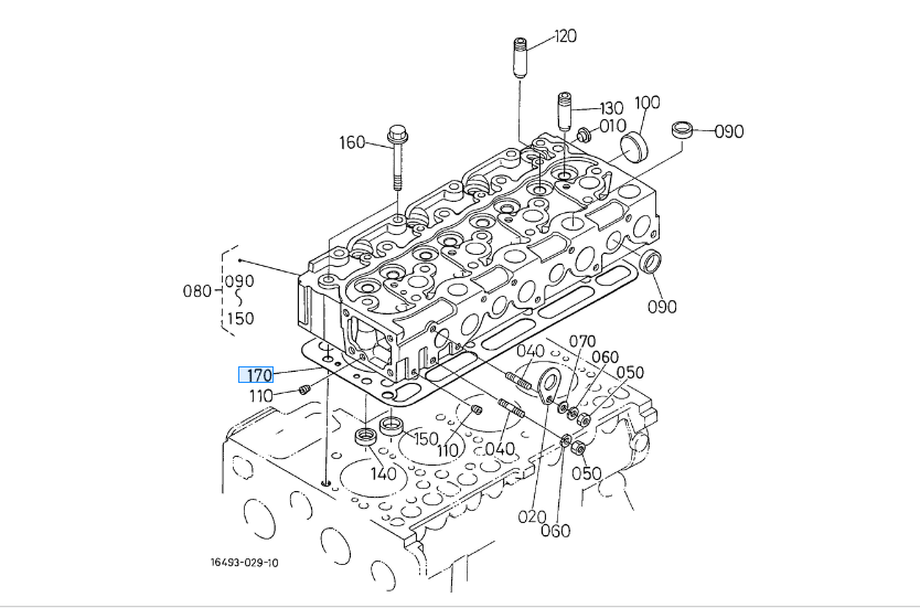 170 op de overzichtstekening, originele cilinderkop pakking Kubota Schäffer V2203 1907703310 || 19077-03310