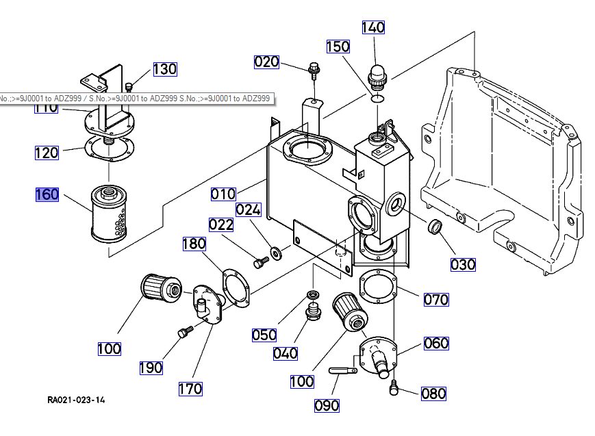 160 op de overzichtstekening, origineel retourfilter voor de hydraulische olie Kubota RA01162190 || RA011-62190