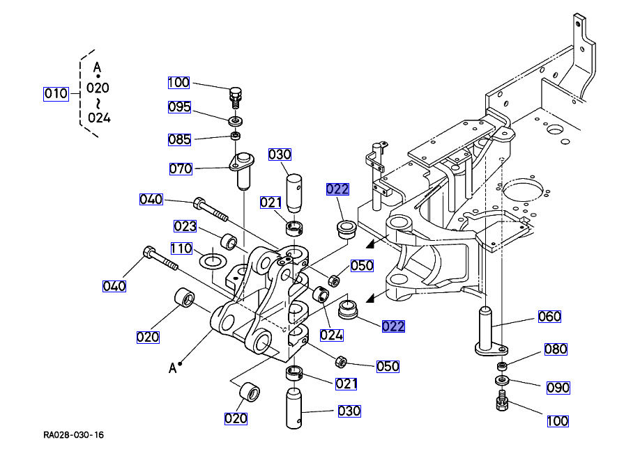 022 op de overzichtstekening, originele bus met flens Kubota RA02866430 || RA028-66430