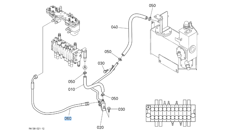 060 op de overzichtstekening, originele hydrauliekslang Kubota RA13184412 || RA131-84412