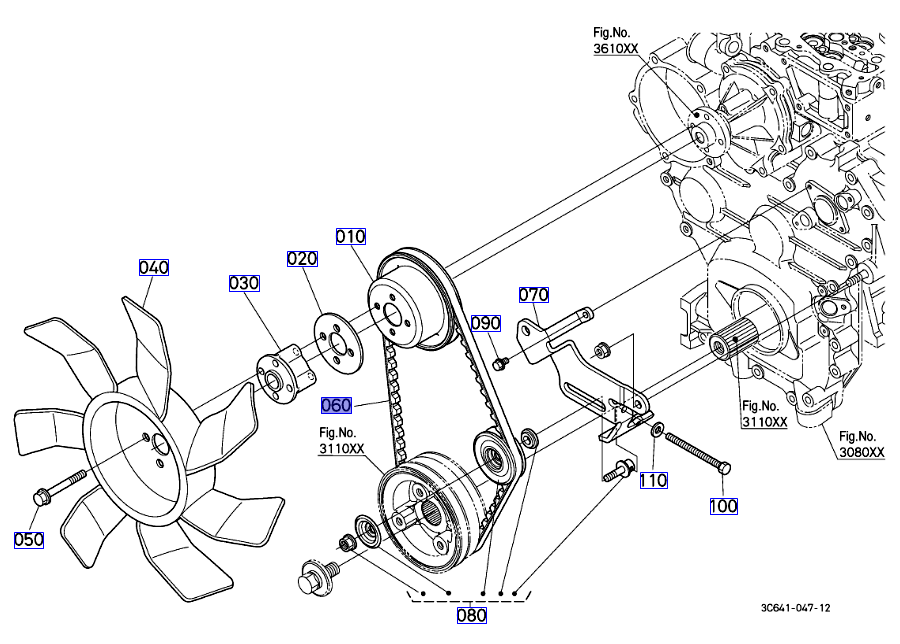 060 op de overzichtstekening, originele v-snaar Kubota 1G35597010 || 1G355-97010