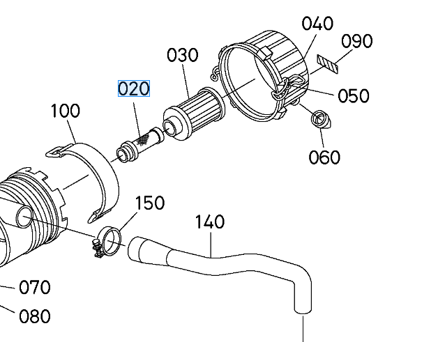 020 op de overzichtstekening, origineel luchtfilter element binnen RG15842920 || RG158-42920