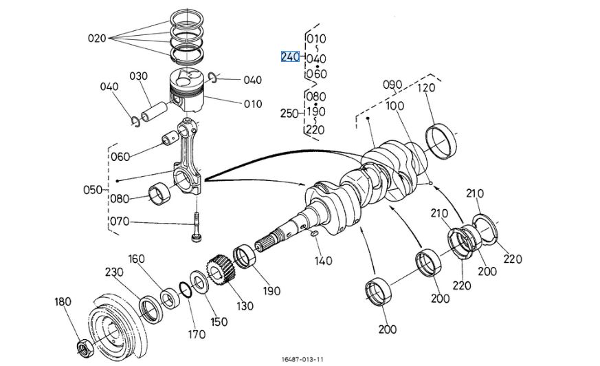 240 op de overzichtstekening, originele zuiger kit Kubota 1G81321772 || 1G813-21772