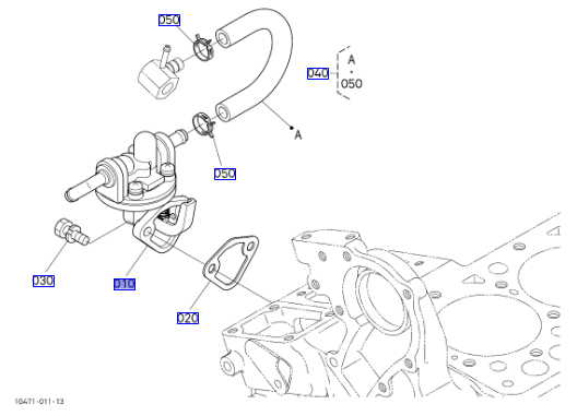 010 op de overzichtstekening, originele mechanische opvoerpomp Kubota 1G82652030 || 1G826-52030