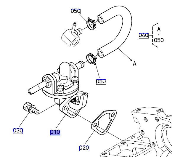010 op de overzichtstekening, originele opvoerpomp Kubota ''Mikuni''  1G96152030 || 1G961-52030