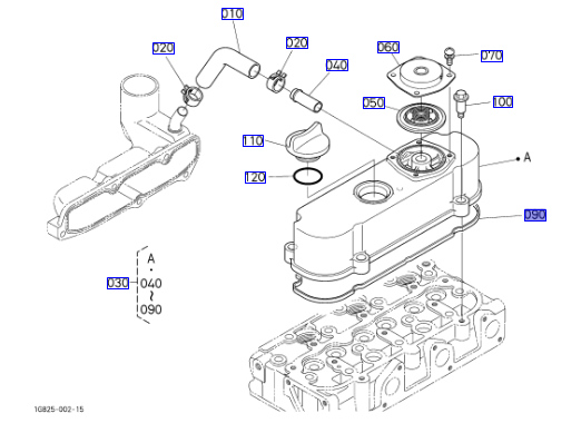 090 op de overzichtstekening, originele klepdekselpakking Kubota 1G96214522 || 1G962-14522