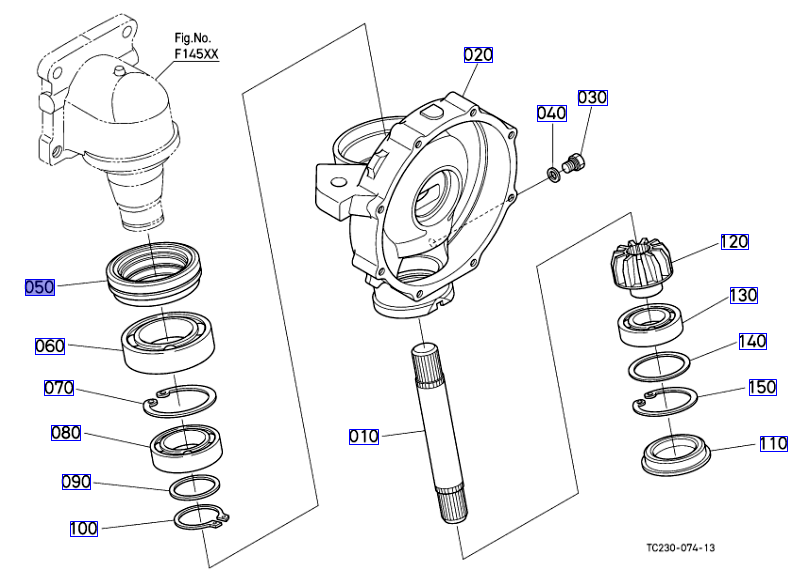050 op de overzichtstekening, originele cassette keerring / olie keerring Kubota TC230-13040 || TC23013040