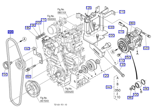 220 op de overzichtstekening, originele v--snaar Kubota 3407079320 || 34070-79320