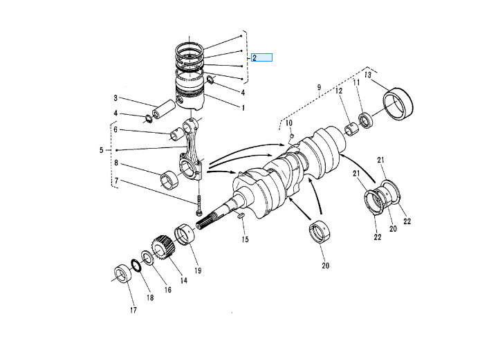 2 op de overzichtstekening, originele set zuigerveren Kubota 1527121052 || 15271-21052