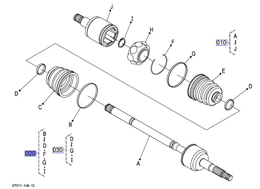 020 op de overzichtstekening, reparatieset homokineet origineel Kubota K756191512 || K7561-91512